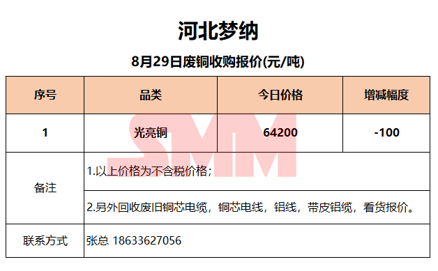 8月29日河北梦纳 废铜收购报价