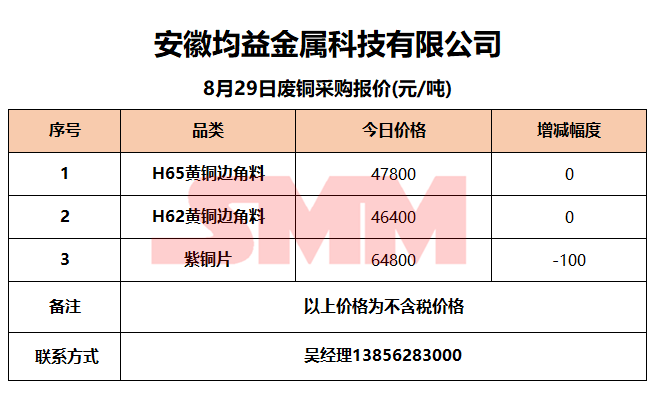 8月29日安徽均益 废铜采购报价