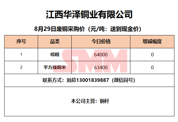 8月29日江西华泽铜业 废铜采购报价