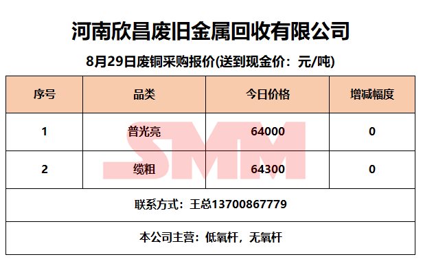 8月29日河南欣昌 废铜采购报价
