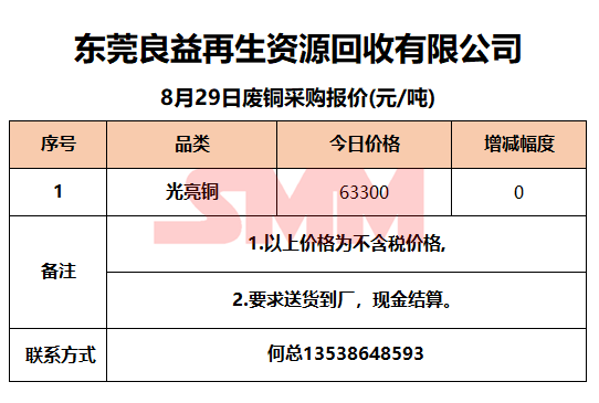 8月29日东莞良益 废铜采购报价