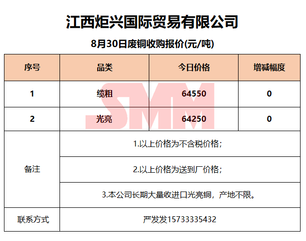 8月30日江西炬兴 废铜收购报价
