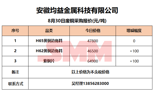 8月30日安徽均益 废铜采购报价