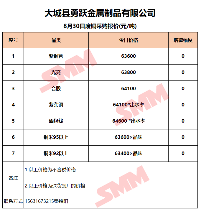 今日大城勇跃,废铜采购报价已更新,有货的朋友欢迎联系我们!