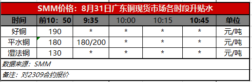 8月31日广东铜现货市场各时段升贴水(第一时段9:35)【SMM价格】