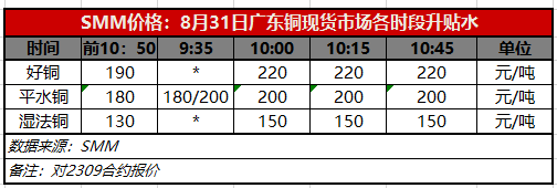 8月31日广东铜现货市场各时段升贴水(第四时段10:45)【SMM价格】