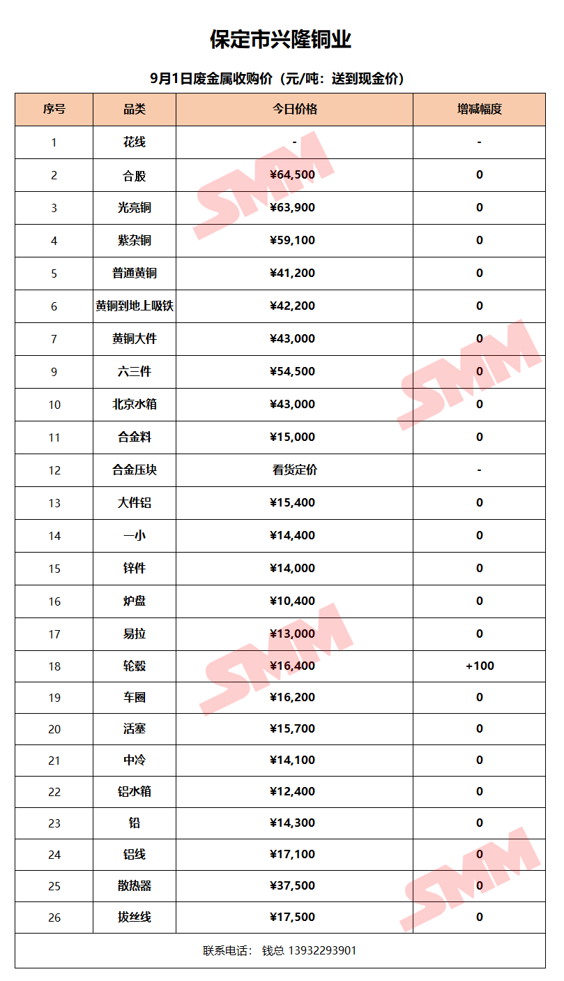 今日保定兴隆铜业,废金属收购报价已更新,有货的朋友欢迎联系我们!