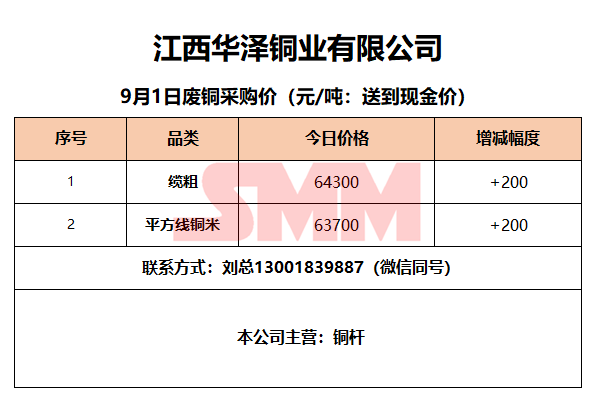 9月1日江西华泽铜业 废铜采购报价