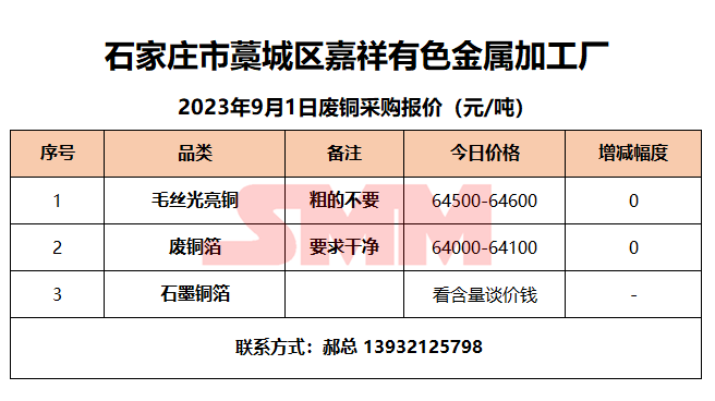今日嘉祥有色金属,废铜采购报价已更新,有货的朋友欢迎联系我们!