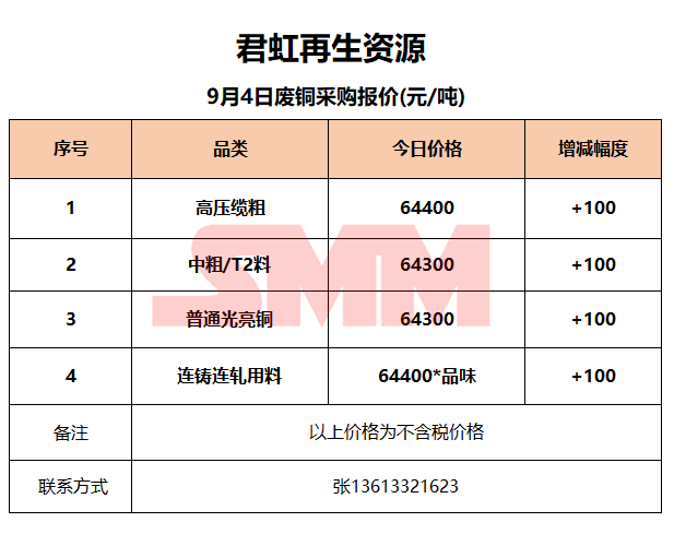 9月4日君虹再生资源 废铜收购报价