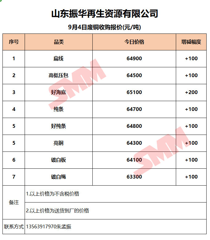 今日山东振华,废铜收购报价已更新,有货的朋友欢迎联系我们!
