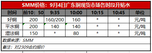9月4日广东铜现货市场各时段升贴水(第二时段10:00)【SMM价格】