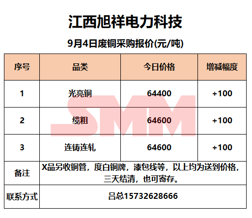 今日江西旭祥,废铜采购报价已更新,有货的朋友欢迎联系我们!