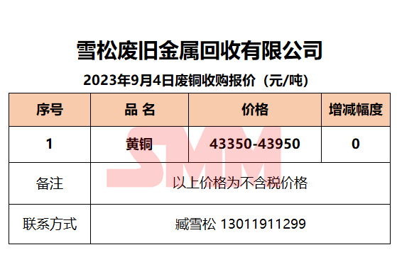 9月4日雪松废旧 废铜收购报价