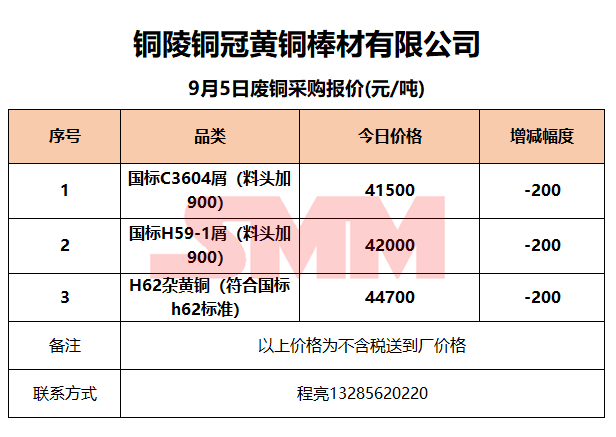 9月5日铜陵铜冠 废铜采购报价