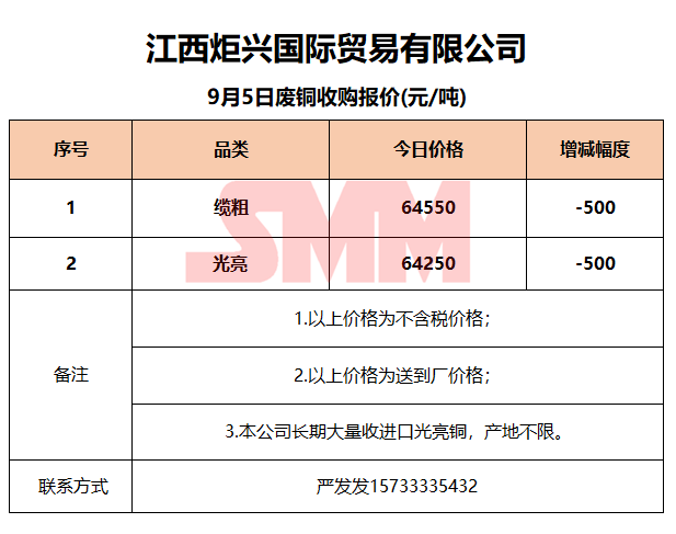 9月5日江西炬兴 废铜收购报价