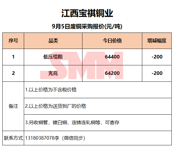 9月5日江西宝祺 废铜采购报价