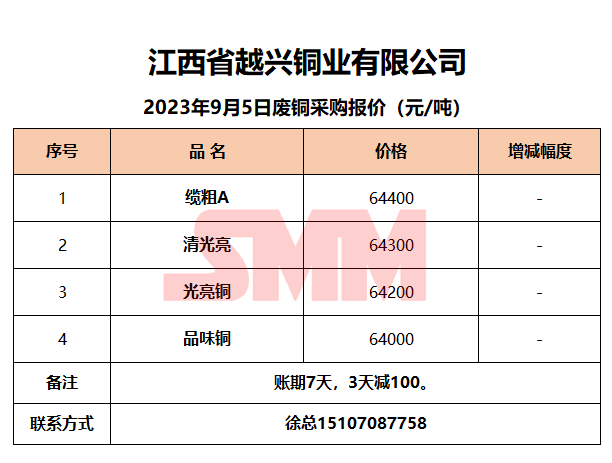 今日江西越兴,废铜采购报价已更新,有货的朋友欢迎联系我们!