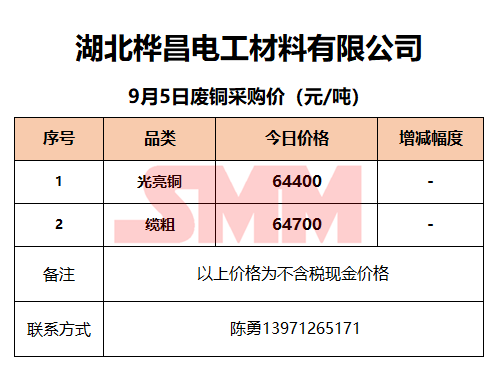 9月5日湖北桦昌 废铜采购报价