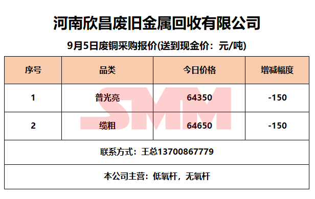 今日河南新昌铜业(欣昌),废铜采购报价已更新,有货的朋友欢迎联系我们!