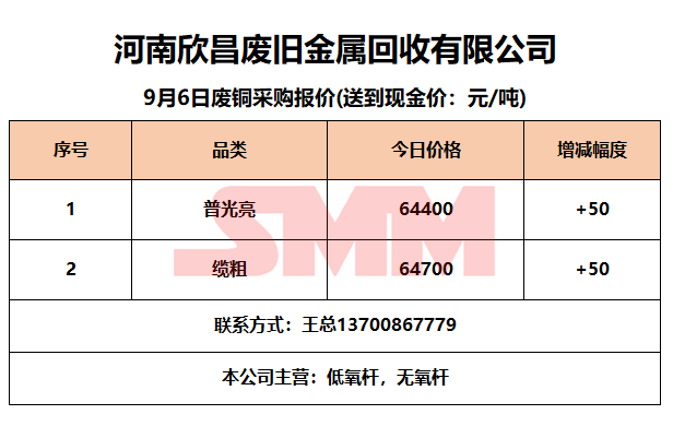 9月6日河南欣昌 废铜采购报价