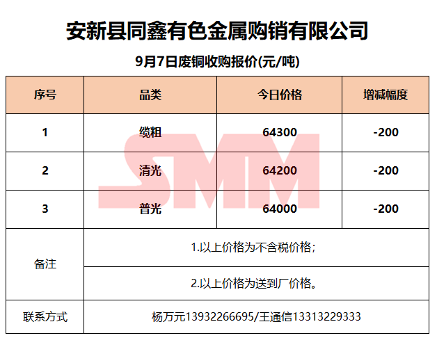 9月7日安新同鑫 废铜收购报价