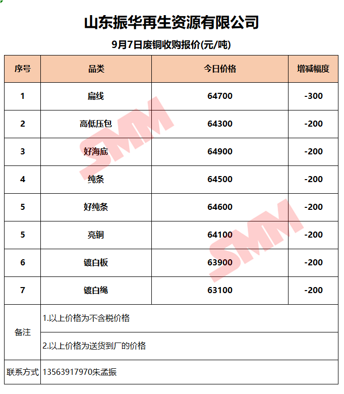 9月7日山东振华 废铜收购报价