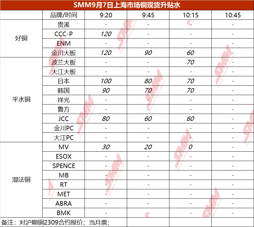 9月7日上海市场铜现货升贴水(第三时段)【SMM价格】