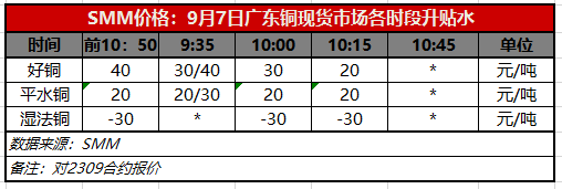 9月7日广东铜现货市场各时段升贴水(第三时段10:15)【SMM价格】