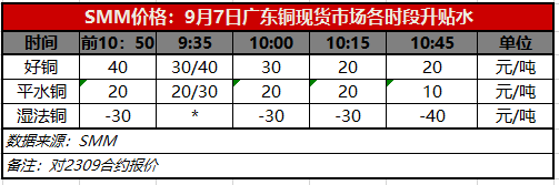 9月7日广东铜现货市场各时段升贴水(第四时段10:45)【SMM价格】