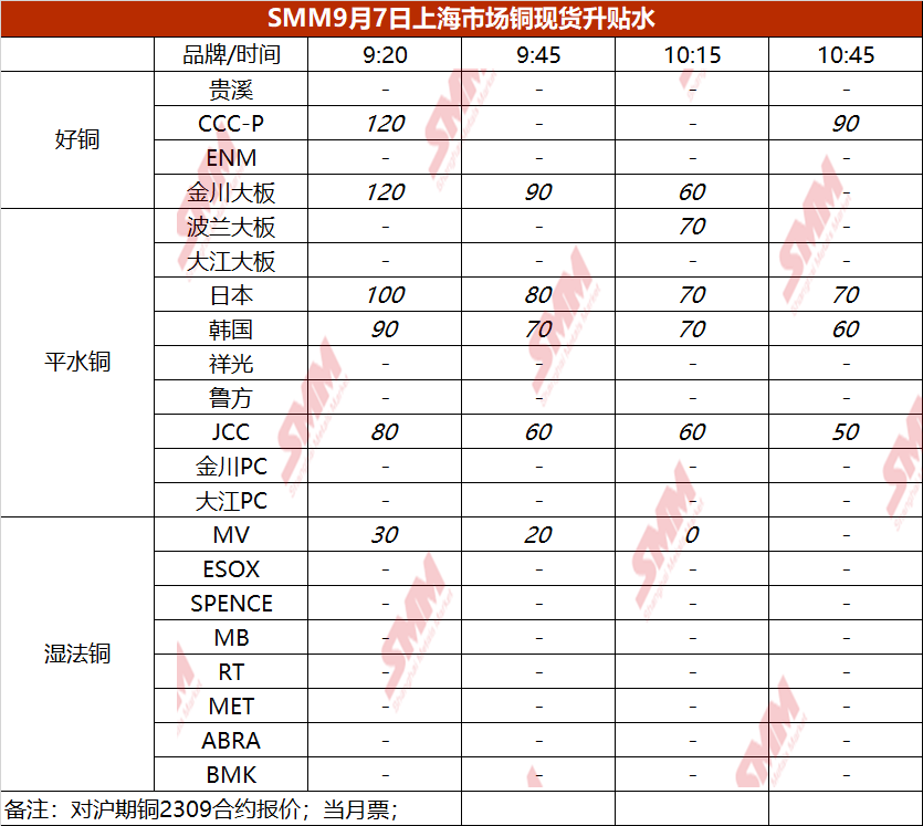 9月7日上海市场铜现货升贴水(第四时段)【SMM价格】