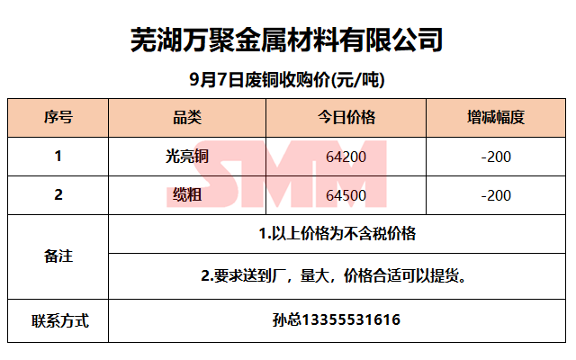 今日芜湖万聚金属,废铜收购报价已更新,有货的朋友欢迎联系我们!
