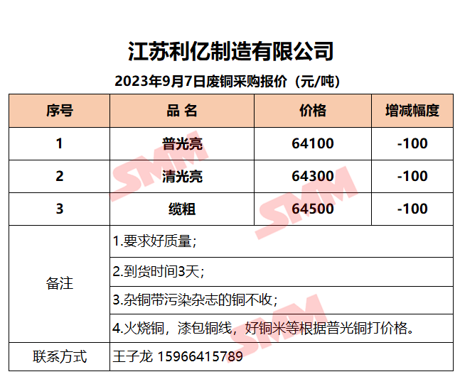 9月7日江苏利亿 废铜采购报价
