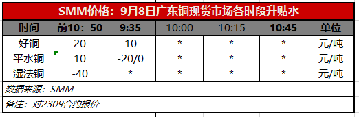 9月8日广东铜现货市场各时段升贴水(第一时段9:35)【SMM价格】