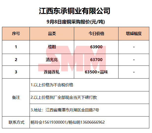 今日江西东承铜业/博升铜业 废铜采购报价已更新,有货的朋友欢迎联系我们!