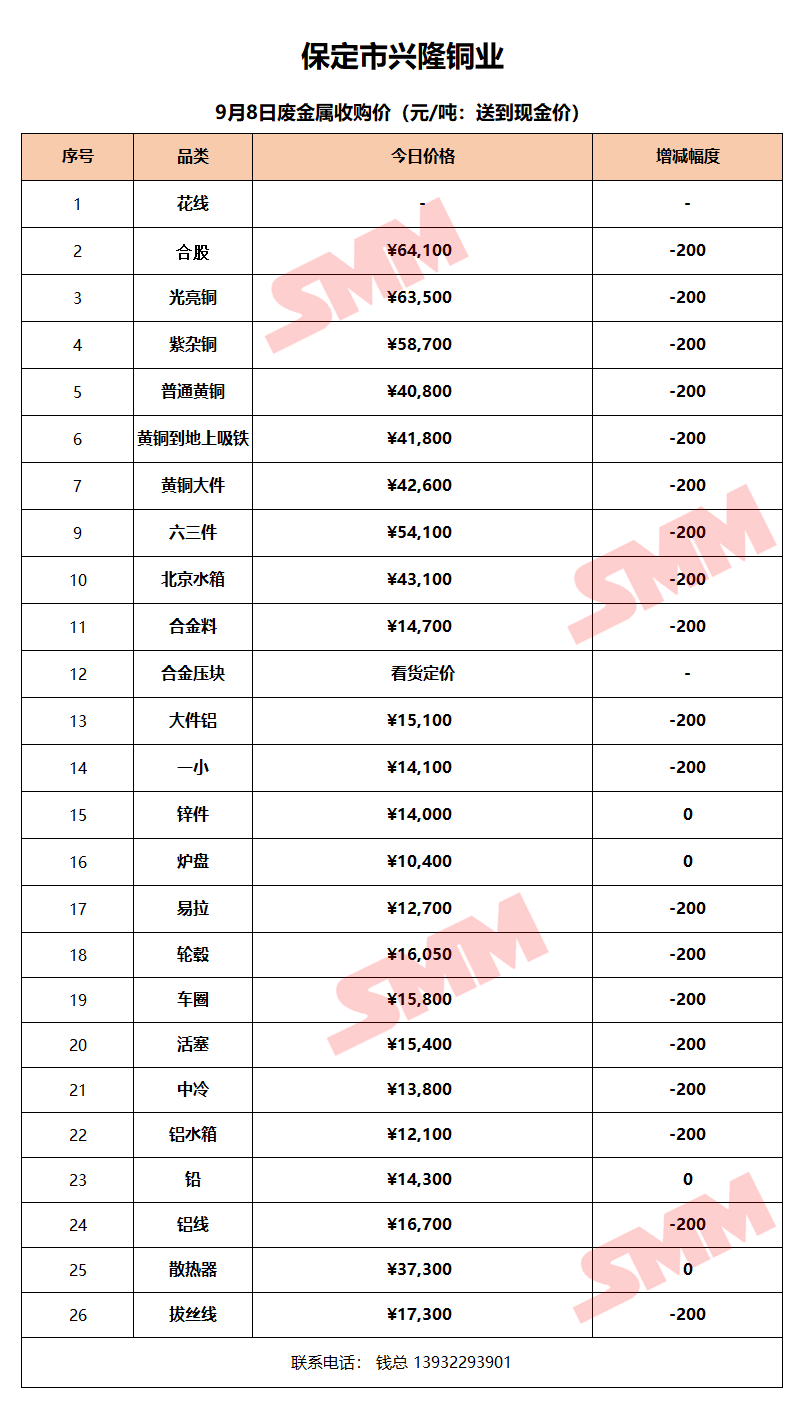 今日保定兴隆铜业,废金属收购报价已更新,有货的朋友欢迎联系我们!
