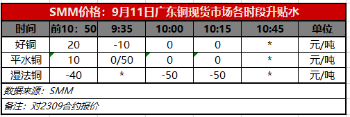 9月11日广东铜现货市场各时段升贴水(第三时段10:15)【SMM价格】