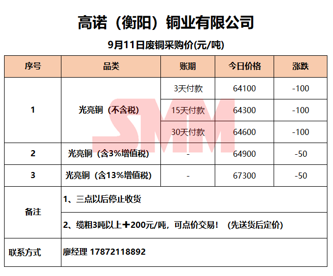 今日高诺(衡阳)铜业,废铜采购报价已更新,有货的朋友欢迎联系我们!