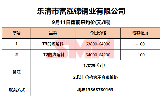 今日乐清富泓锦,废铜采购报价已更新,有货的朋友欢迎联系我们!