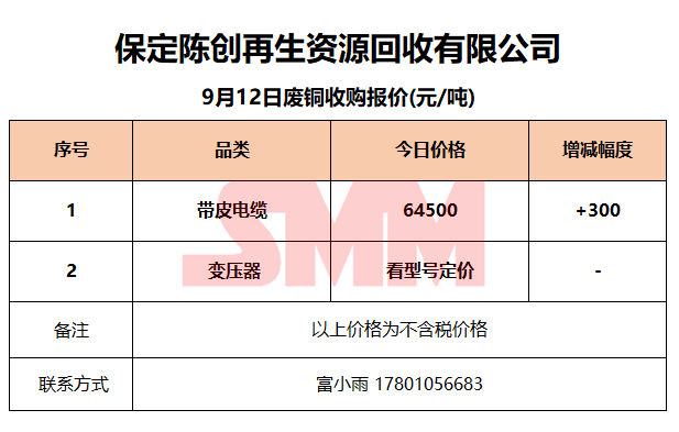 9月12日保定陈创 废金属收购报价