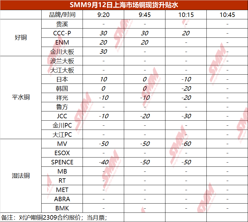 9月12日上海市场铜现货升贴水(第三时段)【SMM价格】