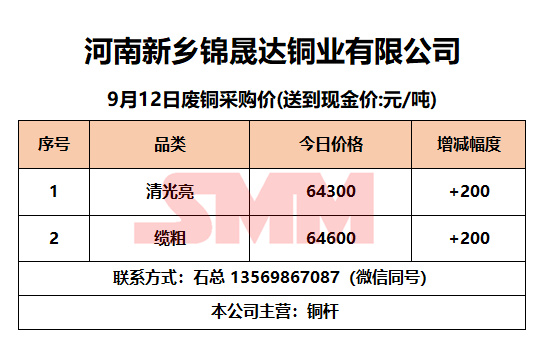 9月12日河南锦晟达 废铜采购报价