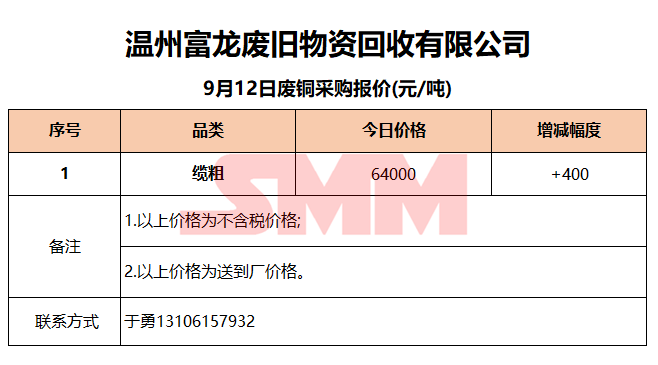今日温州富龙废旧,废铜采购报价已更新,有货的朋友欢迎联系我们!
