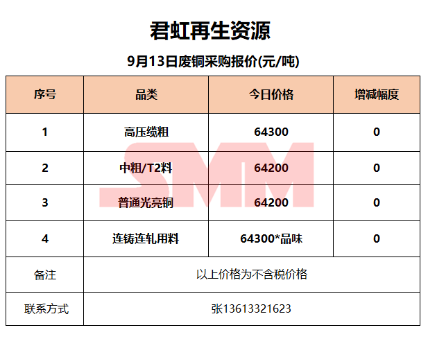 今日君虹再生资源,废铜收购报价已更新,有货的朋友欢迎联系我们!