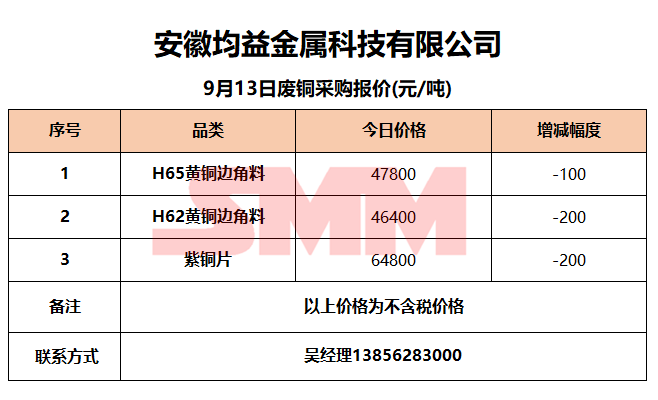 今日安徽均益,废铜采购报价已更新,有货的朋友欢迎联系我们!