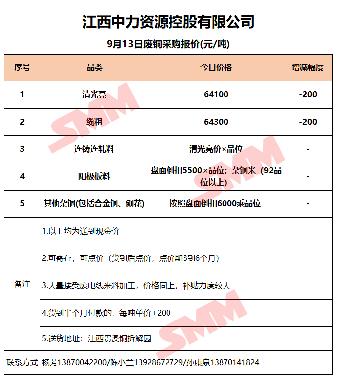 今日江西中力资源,废铜采购报价已更新,有货的朋友欢迎联系我们!