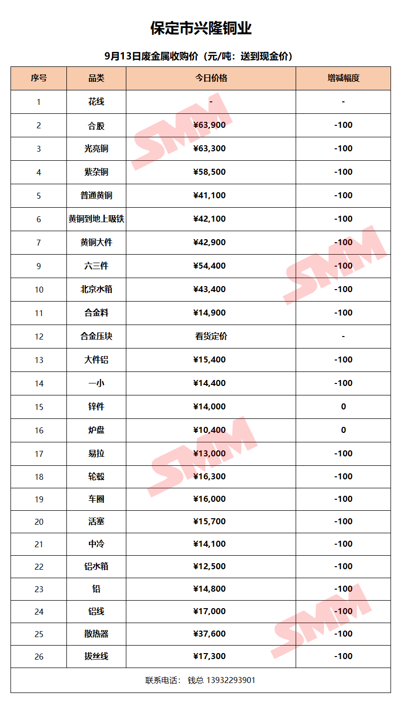 今日保定兴隆铜业,废金属收购报价已更新,有货的朋友欢迎联系我们!