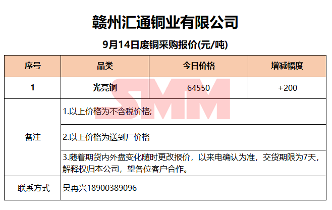 9月14日赣州汇通 废铜采购报价