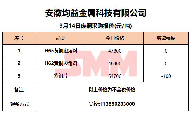 今日安徽均益,废铜采购报价已更新,有货的朋友欢迎联系我们!
