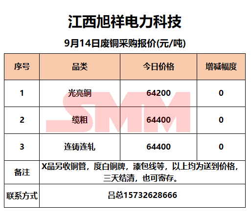 今日江西旭祥,废铜采购报价已更新,有货的朋友欢迎联系我们!